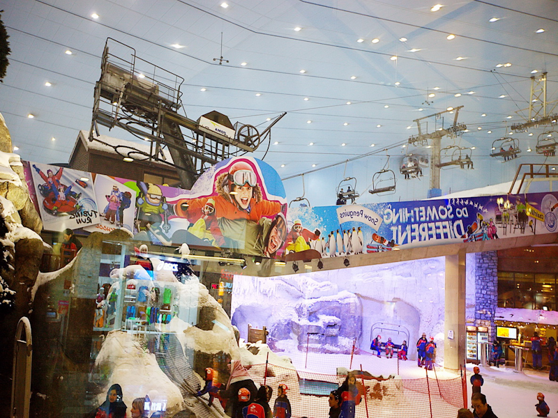 Ski Dubai is an indoor amusement park and the first indoor ski resort in the Middle East and one of the largest in the world, covering an area of approximately 22,500 square metres and covered with artificial snow all year round. It can accommodate 1,500 visitors. It is located in the Mall of the Emirates shopping complex.
